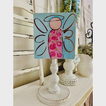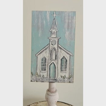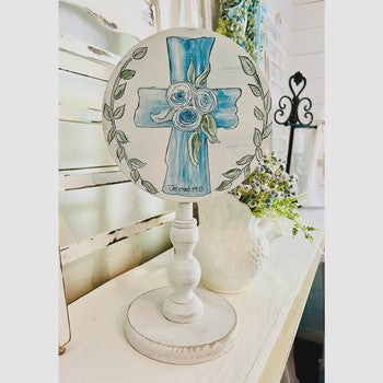 Toppers are custom-designed, hand-painted works of art, UV-printed directly onto wood for vibrant colors & lasting quality. Each topper comes with a hand-glued backing that fits easily into the wood pedestal base.